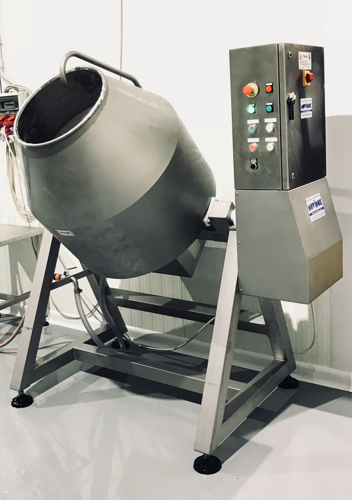 Per applicazioni di dimensioni ridotte o per laboratori e pescherie artigianali, MOVINOX propone infine l’arricciatrice a base basculante, una soluzione compatta progettata per sbattere delicatamente seppie e altri cefalopodi all’interno di apposite vaschette in plastica, assicurando un processo di arricciatura efficace, semplice e sicuro.