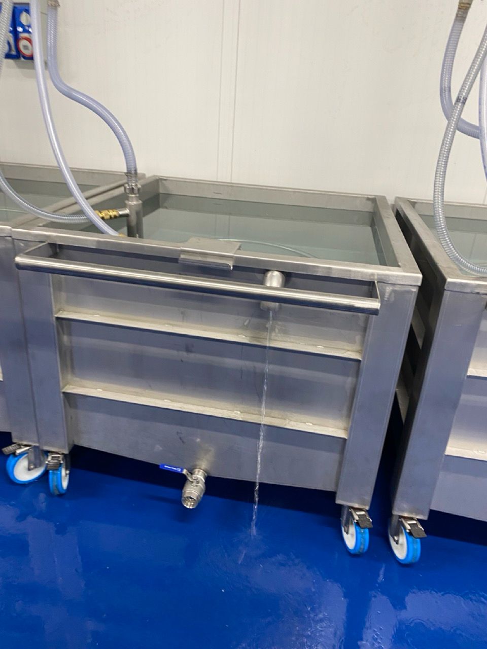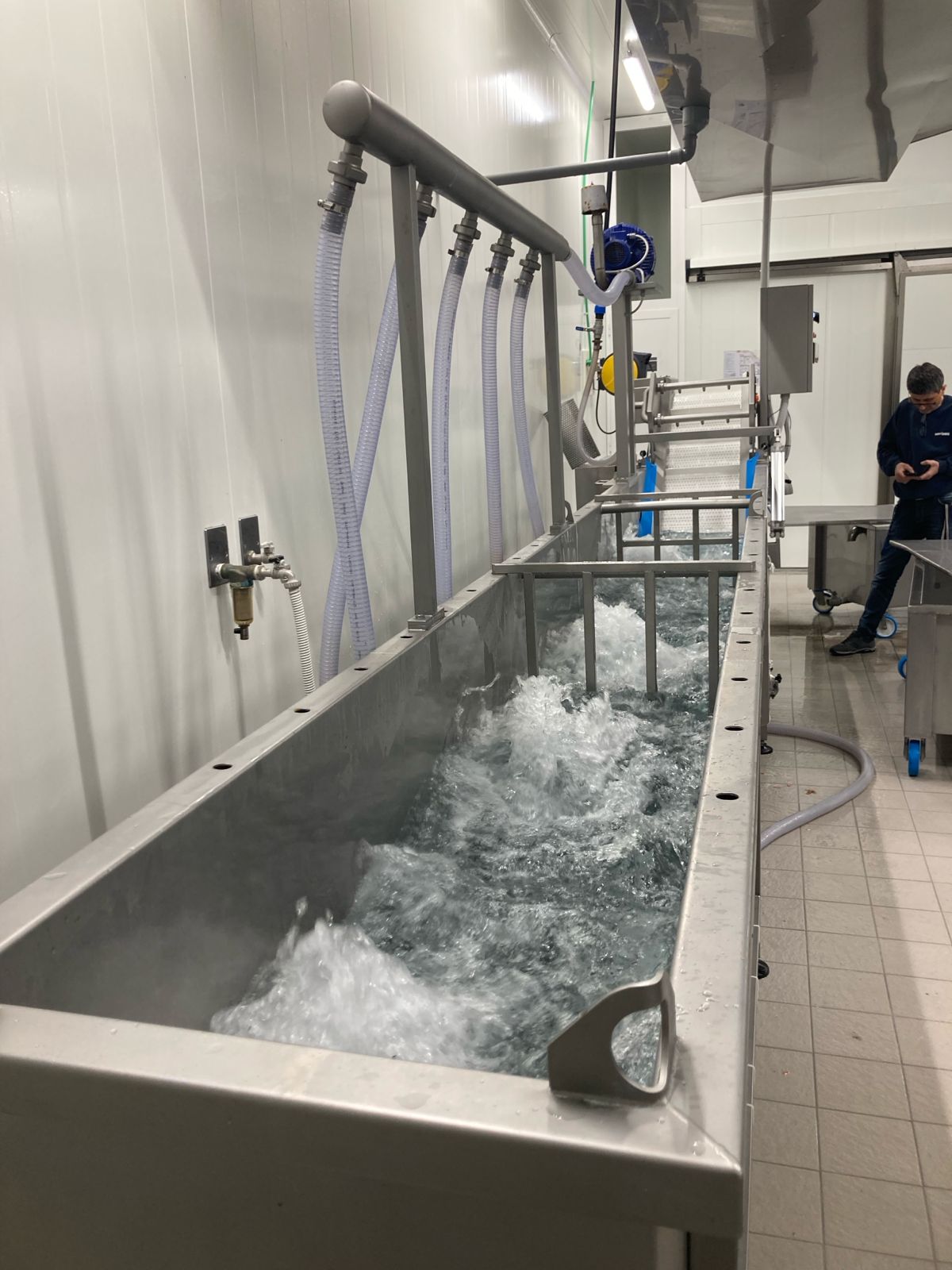 - Vasche di decongelamento e lavaggio in batch, ideali per produzioni discontinue o per lotti differenziati.